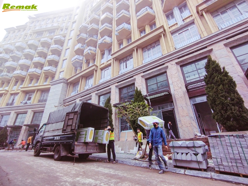 Đơn hàng số lượng lớn bông khoáng tấm Remak® Rock wool LP vừa được Remak vận chuyển đến công trình khách sạn Grand Hotel Victory để nhà thầu thi công hạng mục vách cách âm.