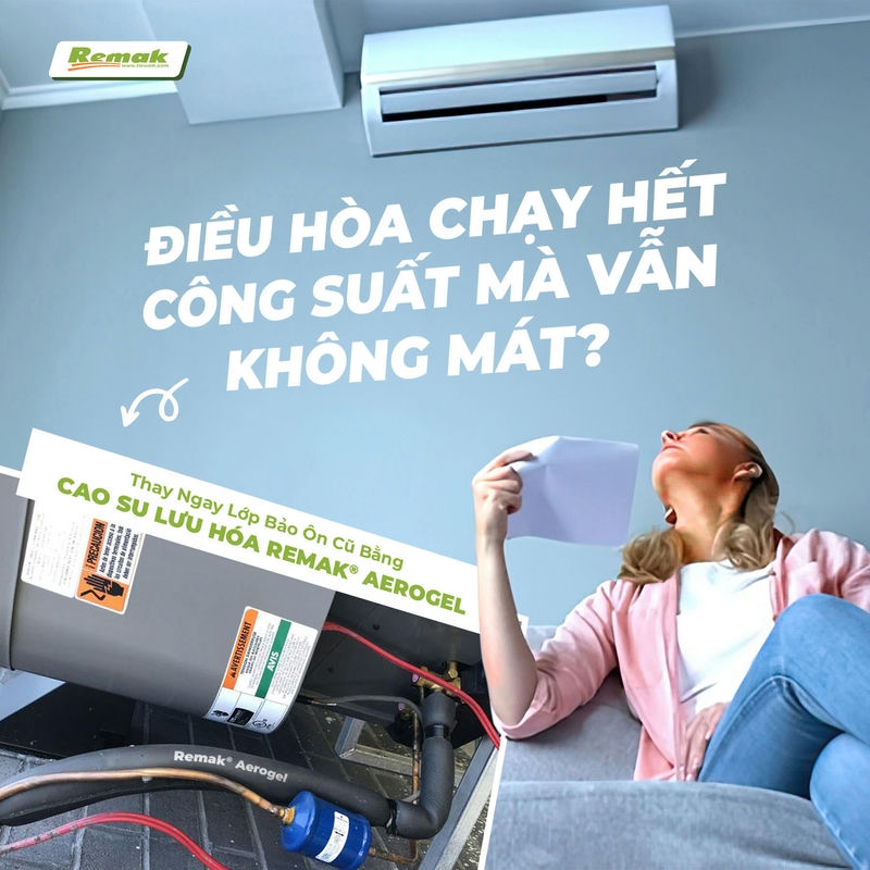 Điều hòa chạy hết công suất mà vẫn không mát? Hãy kiểm tra và thay ngay lớp bảo ôn cũ bằng cao su lưu hóa Remak® Aerogel để cải thiện hiệu suất làm lạnh, tiết kiệm năng lượng và kéo dài tuổi thọ thiết bị.