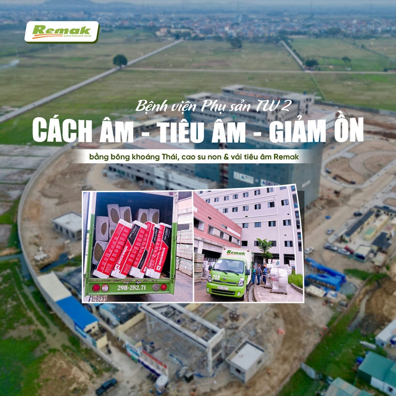 Bông khoáng Rockwool Thái Lan, cao su non Remak® Sound OFF Damping Rubber và vải tiêu âm từ Remak được nhà thầu sử dụng để thi công vách tiêu âm, cách âm chống ồn cho công trình Bệnh viện Phụ sản Trung ương cơ sở 2.