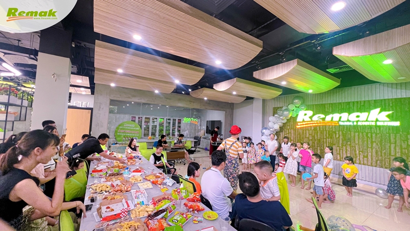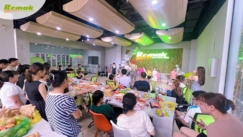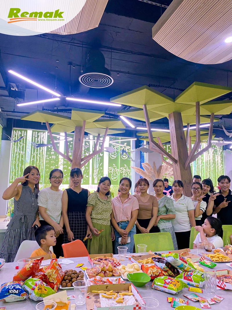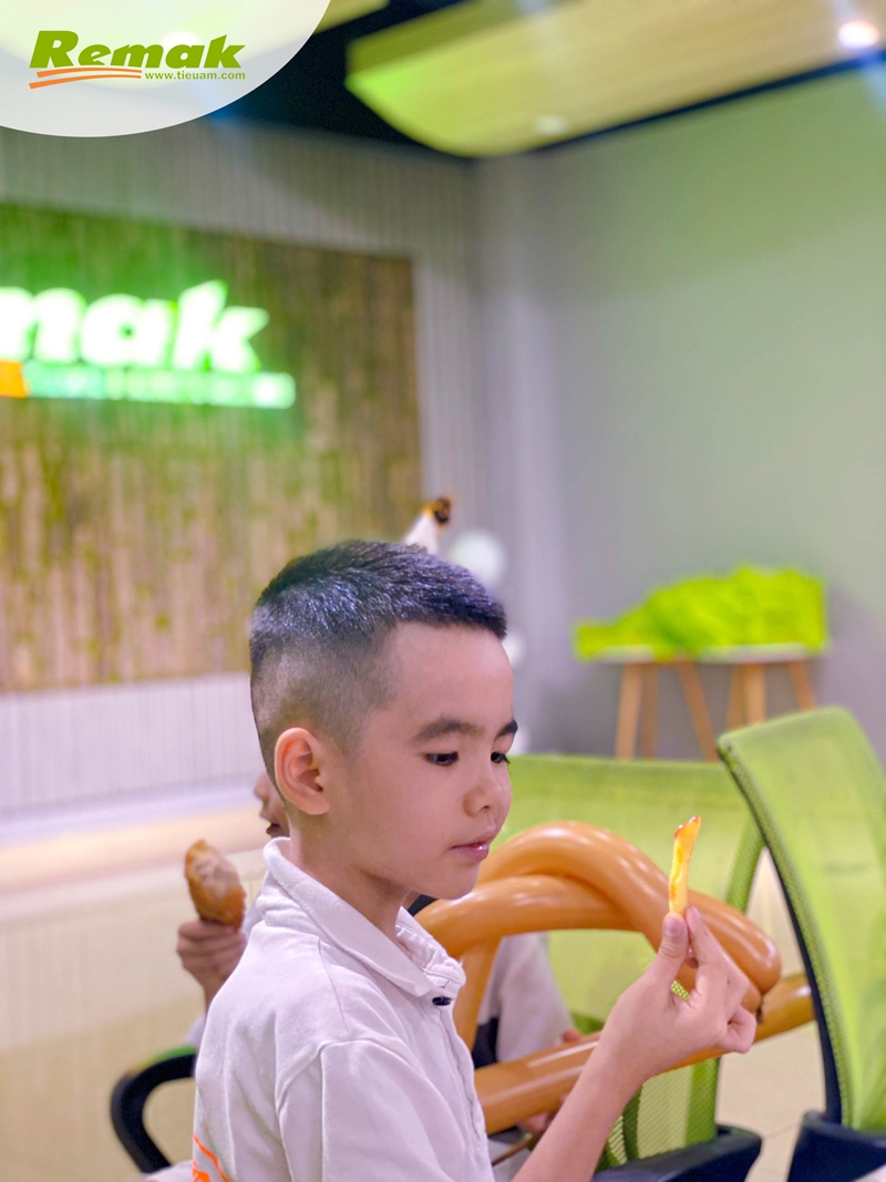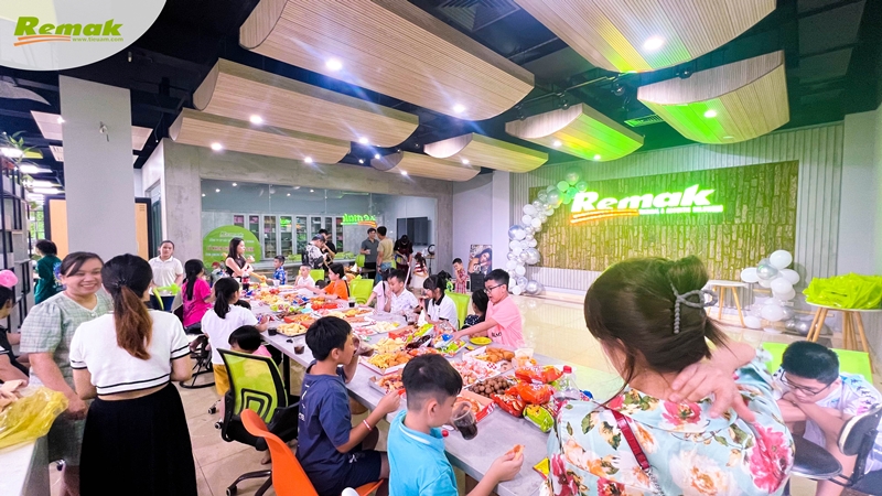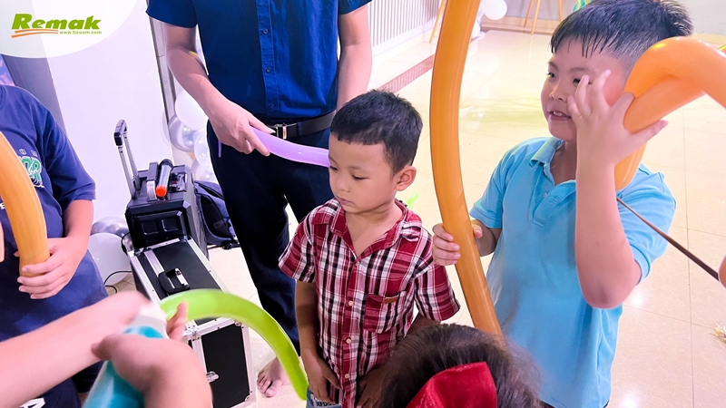 Bộ phận Sự kiện Remak đã chu đáo chuẩn bị bánh pizza, đồ ăn nhẹ, trái cây, nước ngọt… làm các con vô cùng thích thú. Trong khi đó, loạt tiết mục vặn bóng, ảo thuật, đố vui… khéo léo, sinh động, hài hước khiến cả các con lẫn ba mẹ đều say mê, hào hứng hòa mình vào từng diễn biến chương trình.