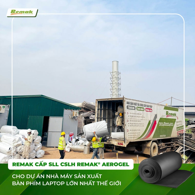 Vừa qua, Remak đã hoàn thành việc cung cấp hàng chục nghìn mét vuông cao su lưu hóa bảo ôn cách âm, cách nhiệt cho nhà thầu thi công hạng mục bảo ôn đường ống điều hòa tại nhà máy sản xuất bàn phím laptop lớn nhất thế giới.