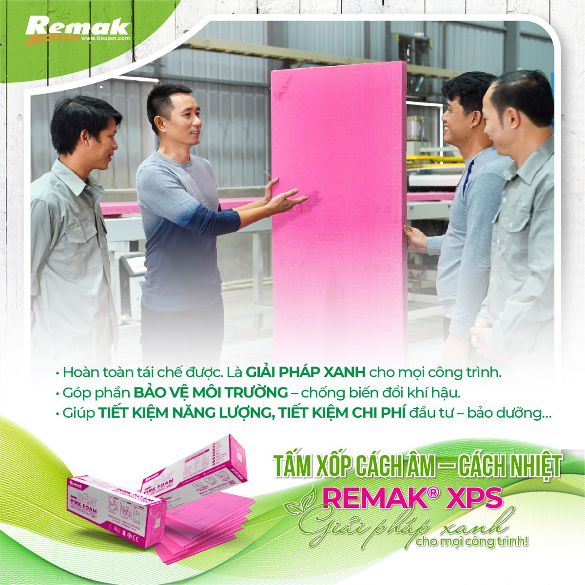 Remak® XPS làm bằng nhựa phế phẩm đã qua sử dụng, kết hợp công nghệ khí CO2 tinh khiết tạo nên một loại vật liệu XANH từ nguyên liệu đến thành phẩm. Sản phẩm mang lại giá trị nhiều mặt cho công trình cũng như nhà đầu tư và các đối tượng sử dụng.