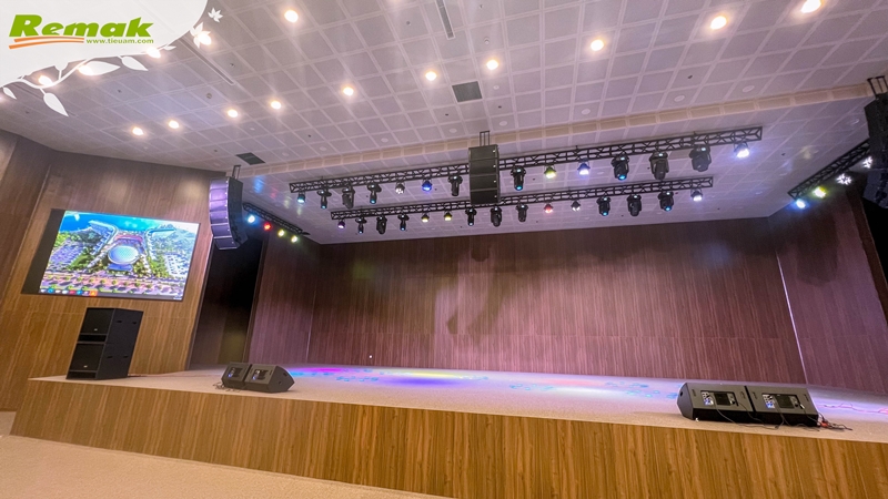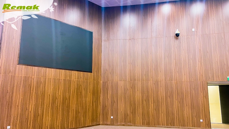 Một số hình ảnh về hạng mục khối nhà Trung tâm Hội nghị quốc tế do Remak thi công tiêu âm bằng bông khoáng Remak® Rockwool và gỗ tiêu âm đục lỗ Remak® Perforated: