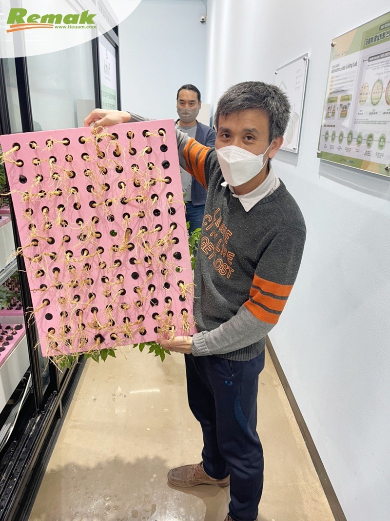 Tiến sĩ Hoàng Văn An (sinh năm 1983) bảo vệ thành công đề tài nghiên cứu chuyên ngành nhân sâm, nấm dược liệu và Probiotics năm 2014 tại trường Đại học Kyung Hee, Hàn Quốc. Ông An sử dụng tấm xốp Remak® XPS làm giá đỡ thủy canh để trồng sâm Ngọc Linh baby và đạt hiệu quả cao