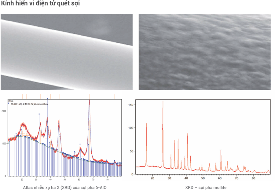 - Nhiệt độ sử dụng của sợi nhôm đa tinh thể có thể đạt từ 1200°C đến 1800°C. Các sản phẩm từ sợi (như chăn cách nhiệt, nỉ, giấy, mô-đun, chi tiết tạo hình đặc biệt...) có tỷ trọng và dung tích nhiệt thấp, độ dẫn nhiệt thấp và khả năng chống sốc nhiệt tốt. Chúng có thể được sử dụng trực tiếp làm vật liệu cách nhiệt cho lò nhiệt độ cao như: vách bên lò, nắp lò, cửa lò... hoặc dùng làm gioăng cách nhiệt cho các bộ phận nhiệt độ cao.