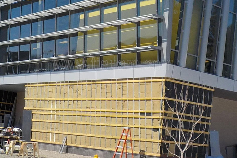 Bông khoáng thường được đặt trong vật liệu ốp ngoài của các cao ốc để tiết kiệm năng lượng