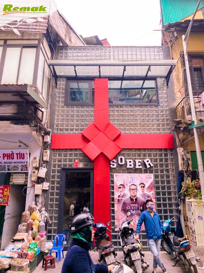 Nhóm vật liệu bông khoáng Remak® Rockwool, Cao su non Remak® SoundOFF Damping Rubber, gỗ tiêu âm soi rãnh Remak® Linear, túi khí cách nhiệt P1 được nhà thầu sử dụng cho Sober lounge bar ở số 12 Đào Duy Từ, Hàng Buồm, Hoàn Kiếm, Hà Nội. Đặc biệt, phụ liệu mùn gỗ MDF mà xưởng mộc Remak vẫn thường gom lại để ủ thành phân bón cây trồng nay được tận dụng thi công hút âm, cách âm phần trần công trình. Đây là bí quyết độc đáo, hiếm gặp và rất thú vị trong kỹ thuật thi công quán bar để cách âm đạt chuẩn.