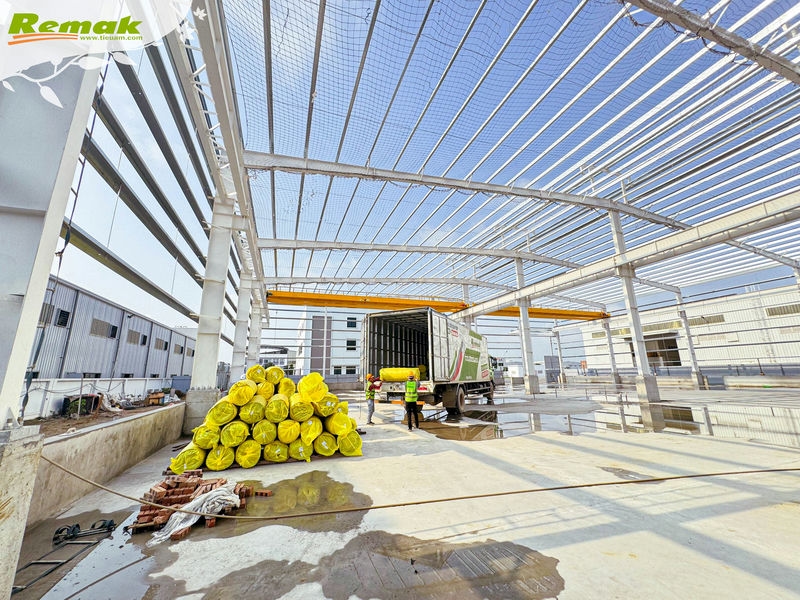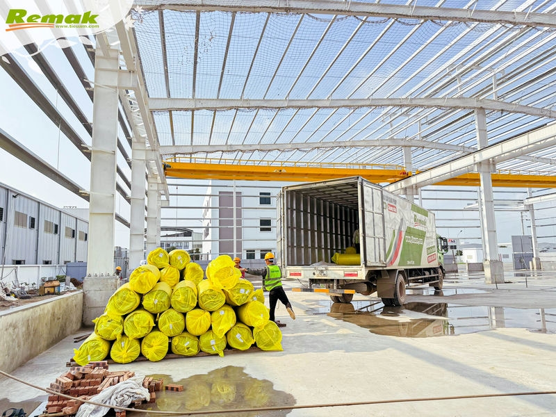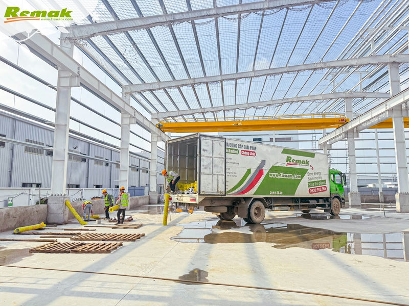 Để đảm bảo các yêu cầu kỹ thuật cũng như sức khỏe con người, góp phần gia tăng năng suất lao động cùng cảm giác thoải mái dễ chịu, phần mái kim loại của nhà máy được chú trọng cách nhiệt bằng giải pháp đồng bộ từ nhóm vật liệu tạo do Remak sản xuất – cung ứng: