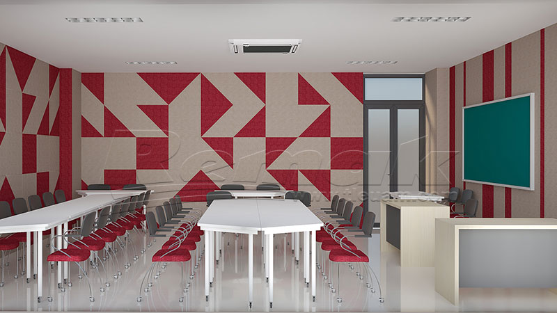 Tấm tiêu âm Sonic kết hợp cùng gỗ tiêu âm soi rãnh cung cấp một giải pháp hiệu quả để kiểm soát âm thanh trong không gian phòng học giảng đường. Những tấm tiêu âm này giúp làm giảm tiếng ồn, giảm thiểu tiếng vang và tăng cường độ rõ của âm thanh.