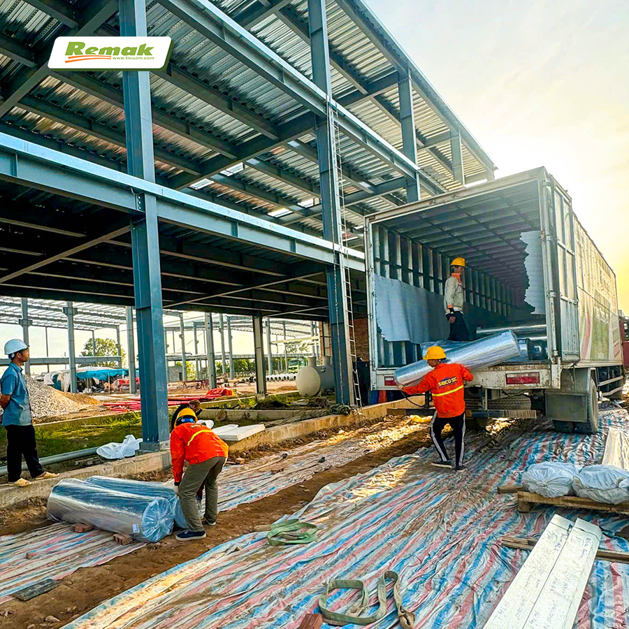 Công trình nhà xưởng dùng túi khí cách nhiệt Remak chống nóng cho mái rất hiệu quả và tiết kiệm chi phí
