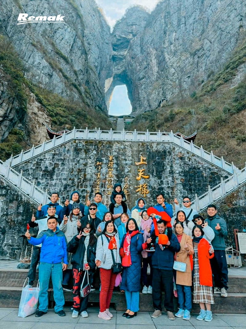 Trong thời gian 28/12/2023-2/1/2024, Công ty CP Xây dựng & Nội thất Remak tổ chức hoạt động du lịch 6 ngày 5 đêm tham quan Phượng Hoàng cổ trấn – Trương Gia Giới – Thiên Môn Sơn (tỉnh Hồ Nam, Trung Quốc). Đoàn 26 người gồm các lãnh đạo, cán bộ, nhân viên khối Văn phòng và khối Sản xuất, đối tác cùng người thân đã có một chương trình thú vị, vui vẻ bên nhau đón mừng năm mới 2024 bình an, phú quý, thuận buồm xuôi gió.