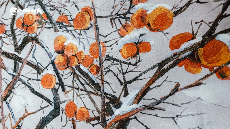 Không gian tinh xảo, đầy chiều sâu với các bức tranh được tạo hình bằng cát cùng những nguyên liệu tự nhiên như đá, sỏi, tre, trúc, thực vật... v.v... tại Họa viện Quân Thanh