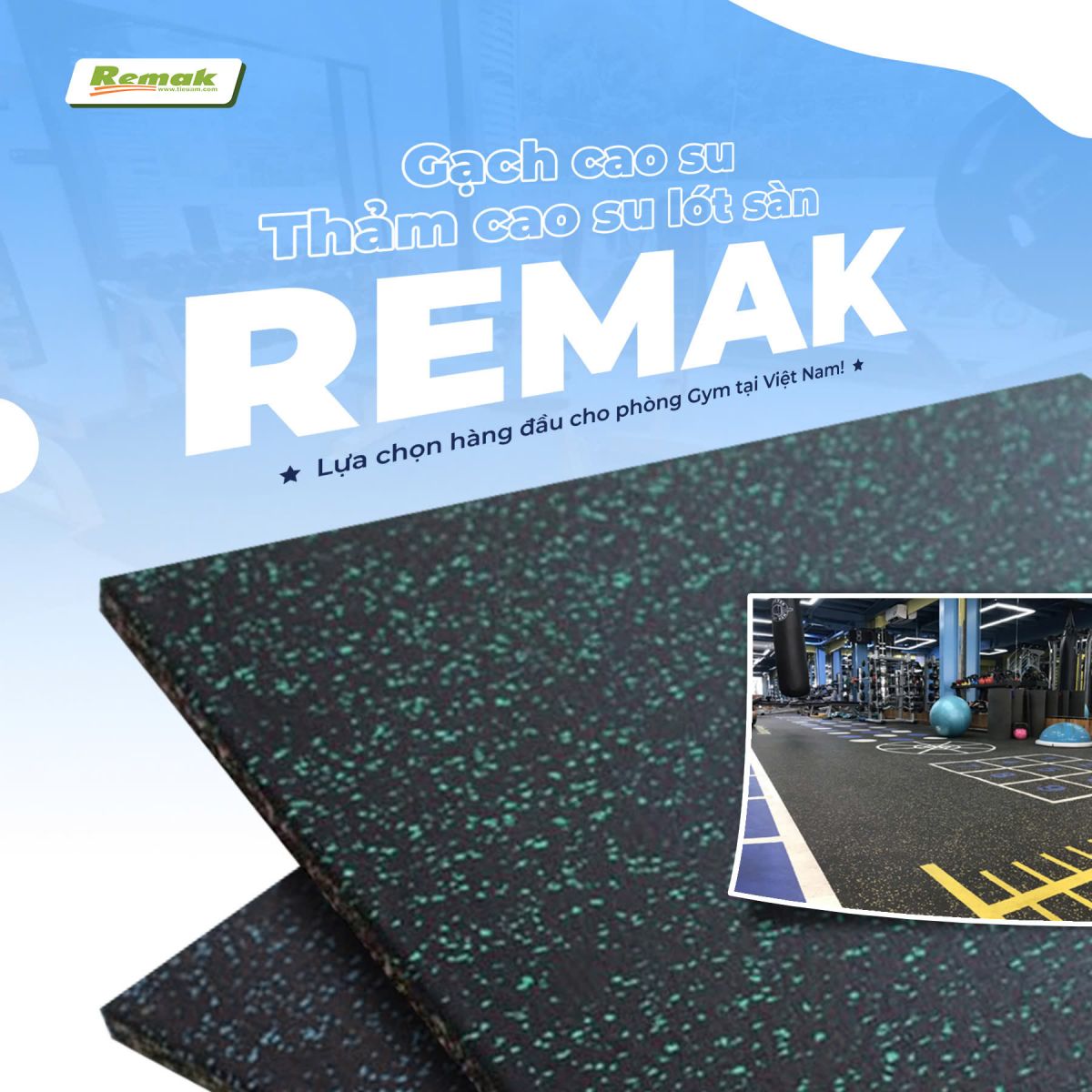 Gạch cao su, thảm cao su lót sàn Remak® hiện được coi là vật liệu lót sàn cách âm, chống rung, chống trơn trượt hiệu quả hàng đầu cho phòng Gym Tại Việt Nam.