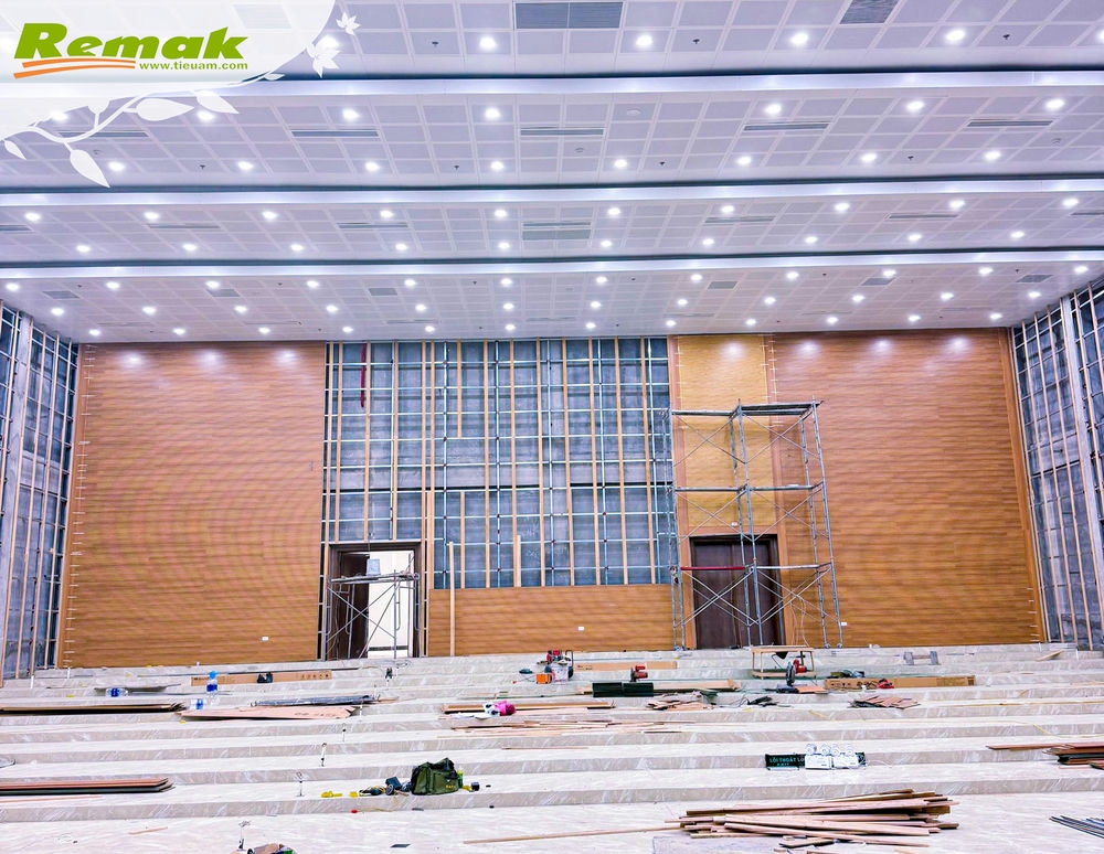 Một số hình ảnh Remak bàn giao đơn hàng gỗ tiêu âm soi rãnh Remak® Linear tại công trình Hội trường Nhà Văn hóa & Nhà Công vụ huyện Thanh Miện, Hải Dương:
