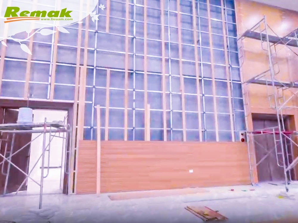 Vì vậy, công trình hội trường Nhà Văn hóa & Nhà Công vụ huyện Thanh Miện, Hải Dương chỉ sử dụng hệ khung xương thép, khung xương gỗ và gỗ tiêu âm soi rãnh Remak® Linear. Đây là dòng sản phẩm gỗ tiêu âm thuộc Top bán chạy và được ưa chuộng nhất của Remak.