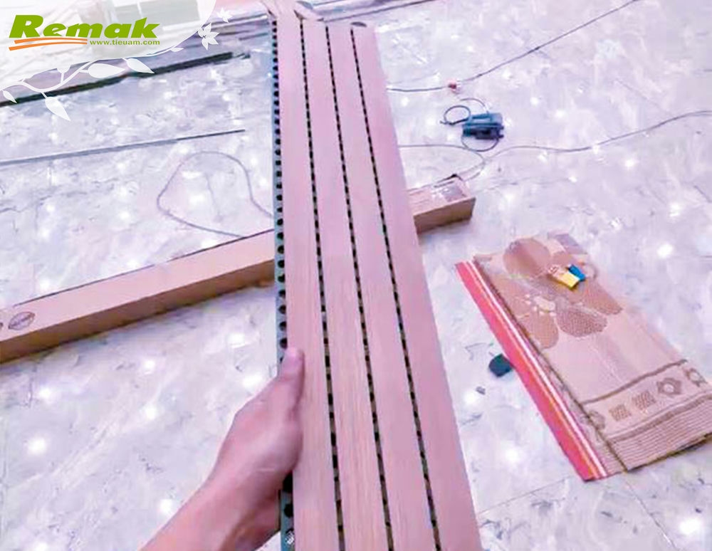 Gỗ tiêu âm soi rãnh kết hợp những rãnh gỗ song song trên bề mặt ván gỗ với lỗ đục phía sau tạo nên vật liệu bề ngoài nổi bật và hiệu suất âm học tuyệt vời. Với nguồn gỗ nguyên liệu nhập khẩu từ Malaysia và sản xuất trên dây chuyền chuyển giao công nghệ tiên tiến của CHLB Đức, Remak® Linear dễ thi công, màu sắc đa dạng, đáp ứng tốt yêu cầu khắt khe từ các công trình. Ván gỗ tiêu âm soi rãnh Remak® Linear thường được sử dụng hiệu quả cho hạng mục thẩm âm vách. Độ thẩm mỹ bắt mắt, trang nhã cùng khả năng giảm tiếng ồn, âm dội, giúp hấp thụ âm thanh có tần số trung bình – cao của chúng thỏa mãn mọi ý tưởng sáng tạo của giới thiết kế nội thất.