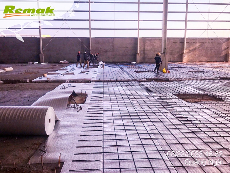 Một số hình ảnh nhà thầu thi công trải nền bằng Remak® PE OPP 1 mặt bạc tại công trình Sembcorp Logistics Park Quảng Ngãi và Trung tâm Kho vận SIS Nghệ An: