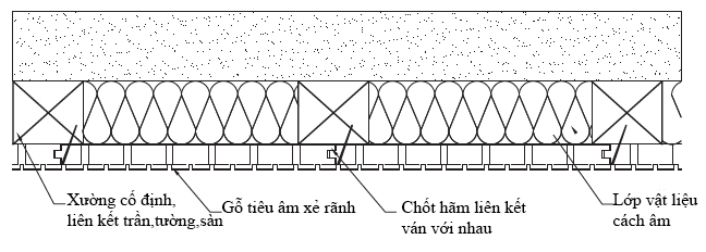 Hình chiếu ngang kết cấu thi công gỗ tiêu âm