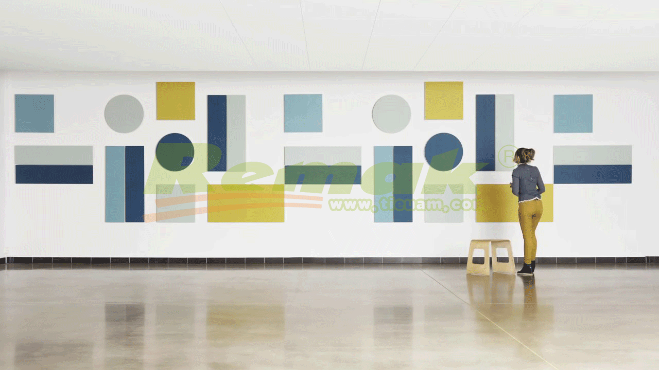 Tấm tiêu âm dán tường được cắt thành hình khối và bày trí thành bức tường nghệ thuật