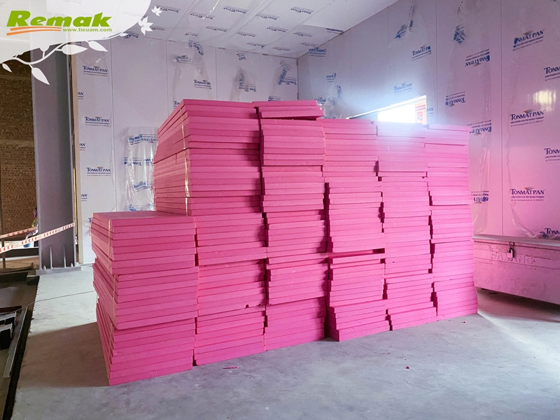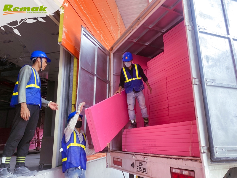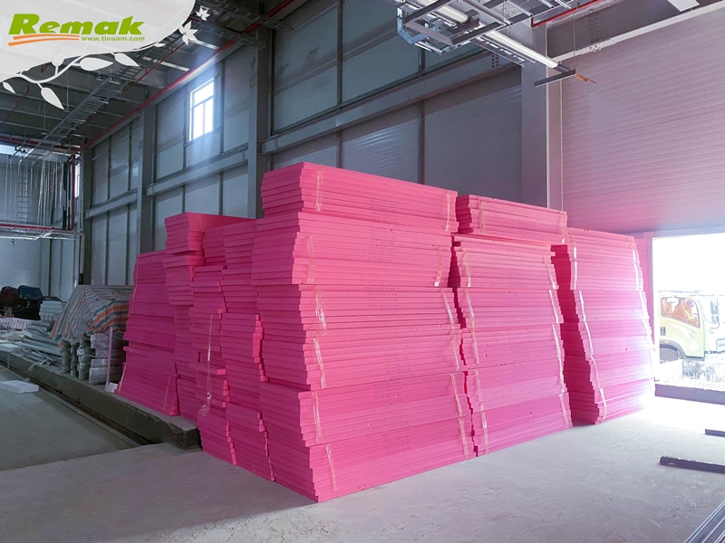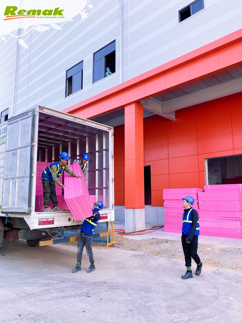 Một số hình ảnh tập kết và thi công tấm xốp siêu nhẹ màu hồng Remak® XPS tại công trình: