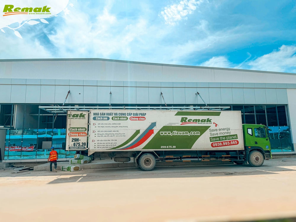 Nhà thầu là Công ty TNHH MTV Thương mại và xây dựng Nam Tuấn vừa tiếp nhận số lượng lớn bông khoáng Remak® Rock wool từ Remak để thi công vách cách âm - cách nhiệt - chống cháy cho dự án lớn của Thái Lan tại KCN Hoàng Mai – Nghệ An.