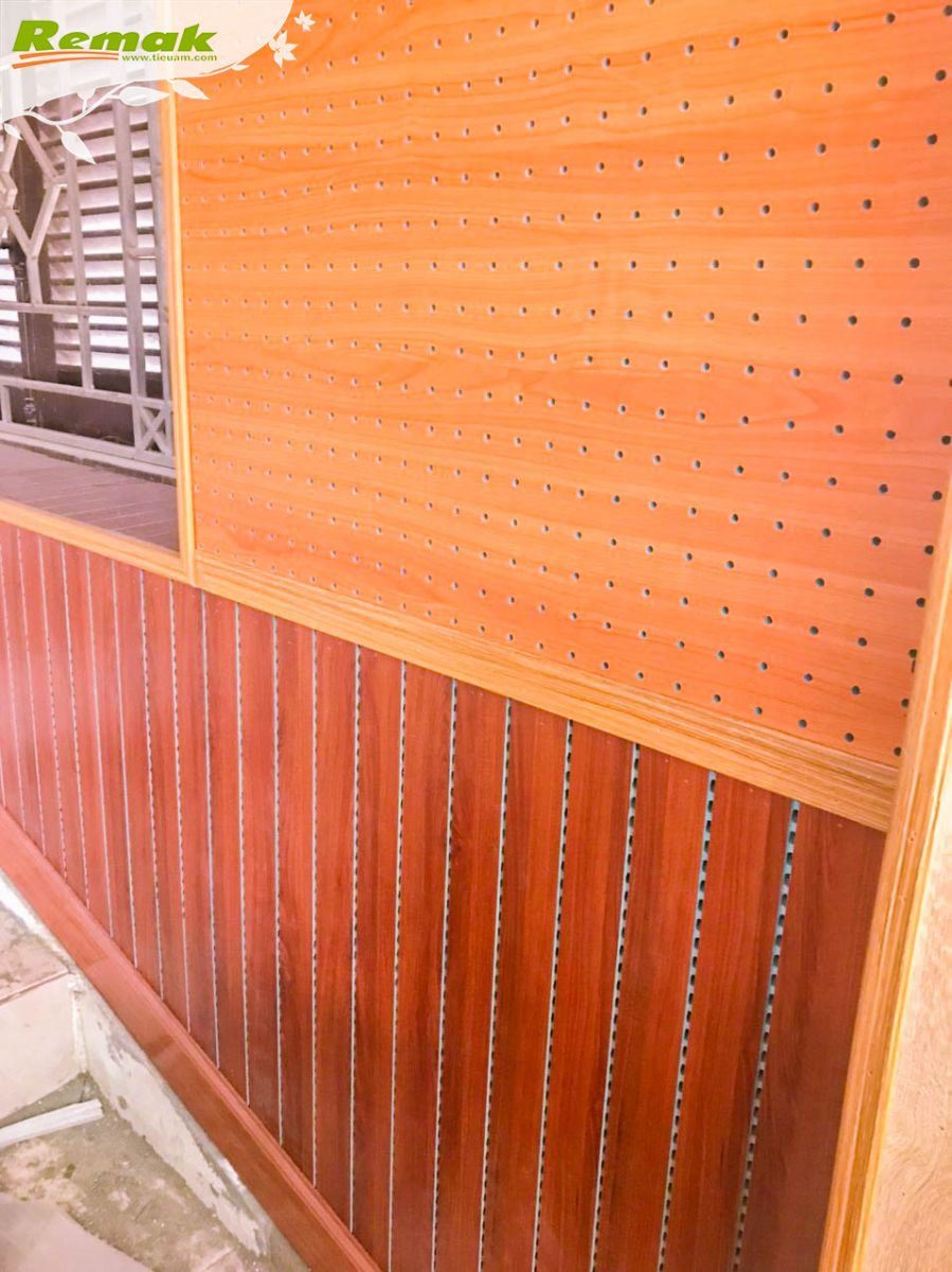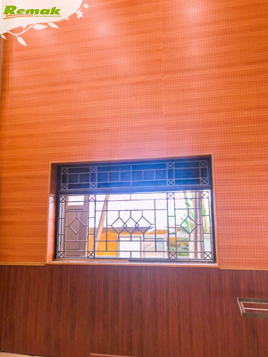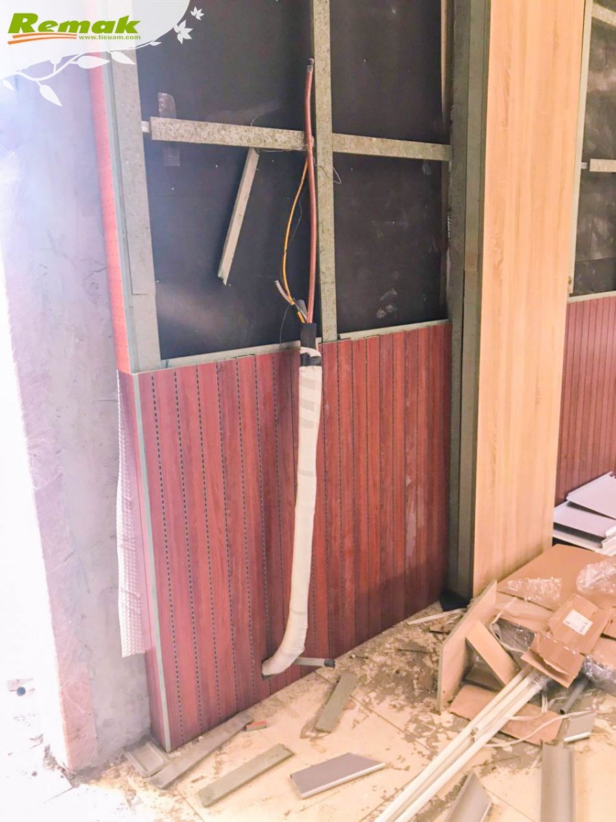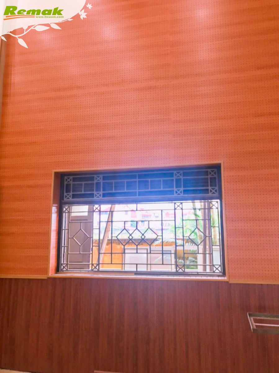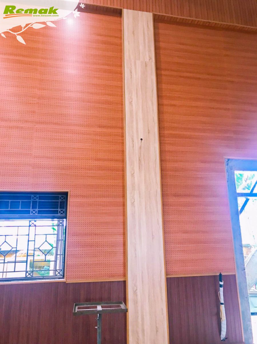 Chùm ảnh dưới đây ghi lại hiện trường hội trường UBND xã Cửu Cao, huyện Văn Giang, tỉnh Hưng Yên sử dụng gỗ tiêu âm đục lỗ Remak® Perforated, gỗ tiêu âm soi rãnh Remak® Linear và cao su non Remak® Sound OFF Damping Rubber để thi công tiêu âm vào cuối tháng 4/2023.