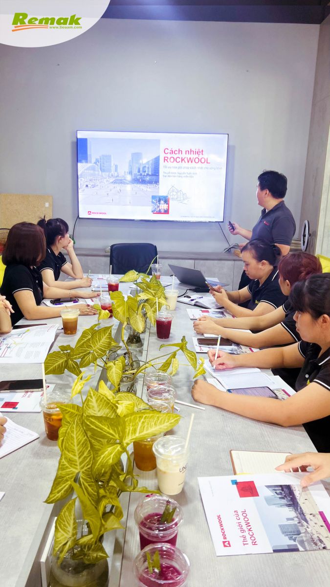Chiều 31/8, Chuyên viên Văn phòng đại diện tại Việt Nam ROCKWOOL (Thailand) Limited Nguyễn Tuấn Anh thực hiện buổi đào tạo – chia sẻ lý thú về các dòng sản phẩm bông khoáng ROCKWOOL đi kèm ứng dụng đa dạng; đối sánh trực quan đặc tính cách nhiệt, cách âm, chống cháy nổi trội so với những vật liệu cùng loại khác; kỹ thuật thi công; giải pháp cho toàn bộ lớp vỏ tòa nhà, các ngành công nghiệp nặng cũng như các công trình dân dụng, thương mại... v.v...