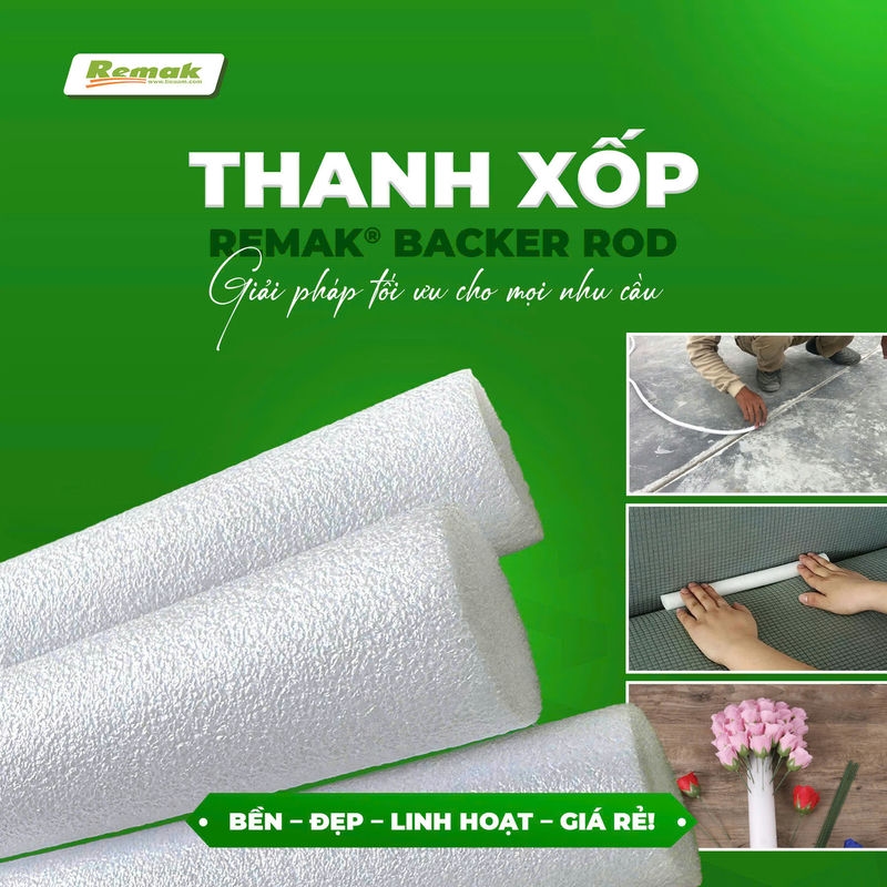 Thanh xốp chèn khe Remak® Backer Rod còn được biết đến với nhiều tên gọi khác nhau như thanh xốp chèn khe co giãn, dây mút foam dẻo, xốp chèn khe bê tông co giãn, xốp chèn khe PE foam co giãn, ống xốp chèn khe backer rod, …