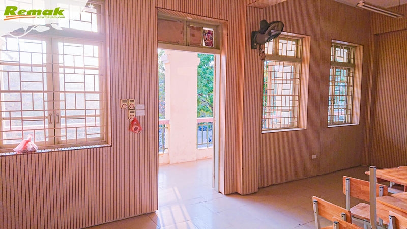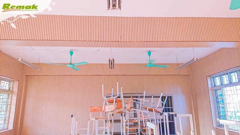 Một số hình ảnh Remak bàn giao đơn hàng và nhà thầu thi công vách gỗ tiêu âm soi rãnh Remak® Linear tại Trường THPT Ngô Thì Nhậm: