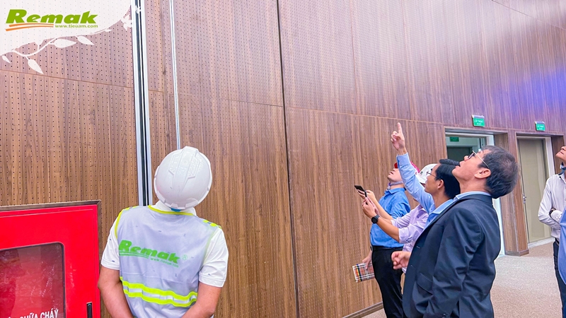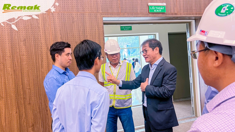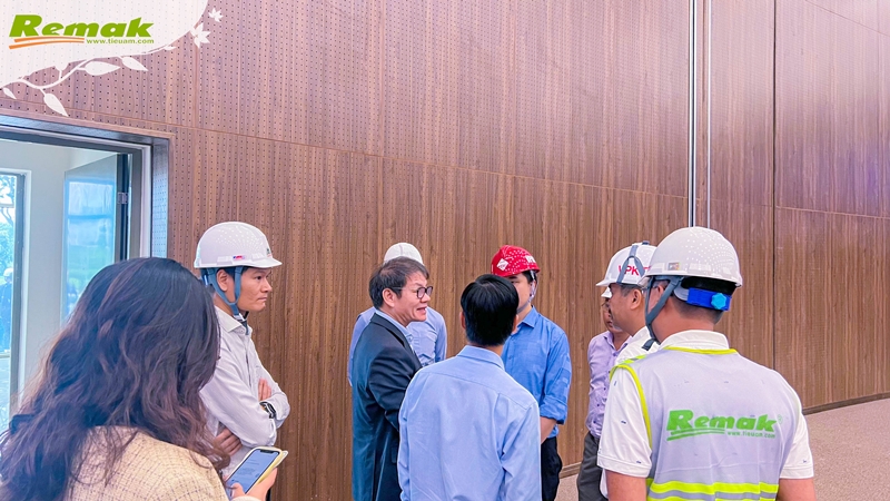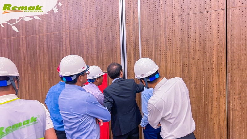 Cũng trong khuôn khổ hoạt động, sau khi khảo sát, Chủ tịch Hội đồng Quản trị Công ty Cổ phần ô tô Trường Hải (THACO Group) Trần Bá Dương – nhà tài trợ hạng mục khối nhà Trung tâm Hội nghị quốc tế có những chia sẻ bổ ích với các đại diện NIC và Remak. “Không gian xử lý tiêu âm tốt tạo ra hiệu quả khác biệt và hiệu suất cao về âm thanh, đặc biệt là khắc phục được các tiếng vang vọng.” – ông Dương nhận định. Vị tỉ phú sinh năm 1960 này được báo giới mệnh danh là “ông trùm đế chế ngành ô tô & bất động sản 2023”, 1 trong 6 tỷ phú USD của Việt Nam trong danh sách tỷ phú thế giới năm 2023 do Forbes công bố và được Ernst & Young trao giải "Doanh nhân xuất sắc ASEAN 2020" nhờ đóng góp lớn vào nền kinh tế – cộng đồng khu vực. Trước đó, THACO cũng đã tài trợ hạng mục tiêu âm hội trường cho một số tỉnh miền Trung Việt Nam, Tỉnh ủy Thừa Thiên Huế, Quảng Nam... và tất cả các công trình này đều sử dụng đúng vật liệu được chỉ định do Remak sản xuất để thi công: bông khoáng Remak® Rockwool, gỗ tiêu âm Remak® Wooden Acoustic.