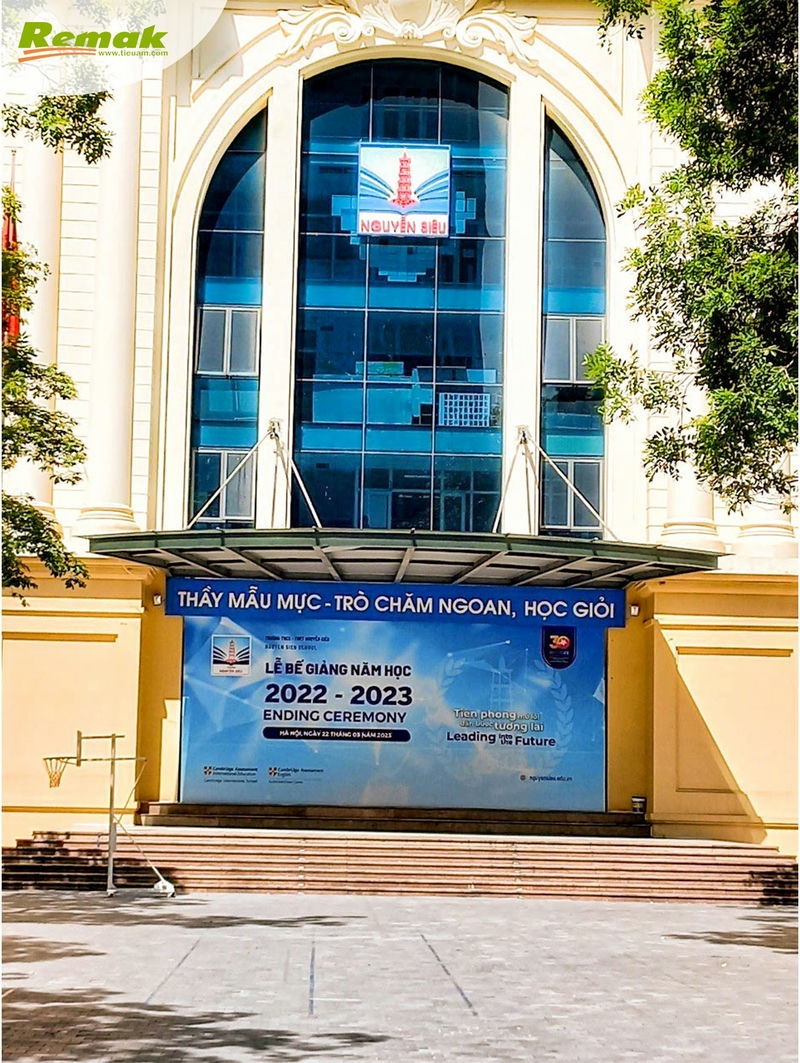 Thực tế, Tiểu học – THCS – THPT Nguyễn Siêu là 1 trong 3 ngôi trường liên cấp tại thành phố tạo dấu ấn khác biệt và ấn tượng với cơ sở vật chất mang phong cách châu Âu vừa tiện nghi vừa bắt mắt. Năm 2018, trường đã ứng dụng vách dán tấm tiêu âm Remak® Acoustic Sonic để khắc phục triệt để tiếng dội nhại, vang vọng, giúp tối ưu hóa hoạt động giảng dạy – học tập của giáo viên và học sinh. Đến năm 2023, giải pháp âm học được nâng cấp vượt trội bằng bông khoáng và gỗ tiêu âm.