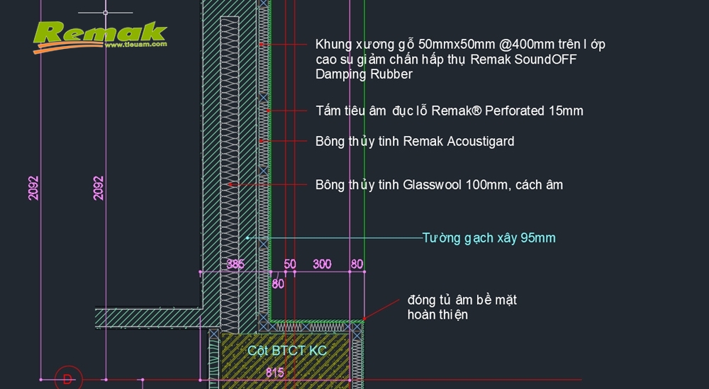 Dưới sự chủ trì của Kiến trúc sư Võ Trọng Nghĩa và VTN Architects, Phòng Hội nghị Casamia Hội An được chỉ định sử dụng hoàn toàn sản phẩm Remak: khung xương gỗ 50x50mm, lớp cao su giảm chấn hấp thụ Remak® SoundOFF Damping Rubber, bông thủy tinh Remak® Acoustigard Glasswool và tấm tiêu âm đục lỗ Remak® Perforated. Các vật liệu này cấu thành vách gỗ tiêu âm đục lỗ Remak® Wooden Acoustic Perforated.