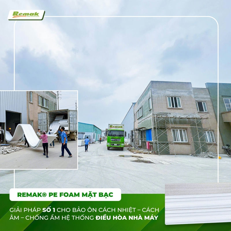 Gần đây, Remak đã cung cấp hàng nghìn mét xốp PE Foam mặt bạc cho hệ thống điều hòa nhà máy sản xuất tại Khu công nghiệp Khai Sơn – Thuận Thành 3, Bắc Ninh. Dự án không chỉ đánh dấu sự tin tưởng của nhà thầu đối với chất lượng sản phẩm Remak, mà còn khẳng định năng lực cung ứng và sản xuất theo yêu cầu đặc thù của khách hàng.