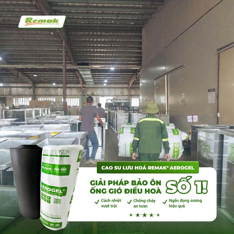 Giải pháp bảo ôn điều hoà, hệ thống HVAC bằng xốp cao su lưu hoá Remak® Aerogel hiệu quả cách nhiệt vượt trội, chống cháy, ngăn ngưng tụ và dễ thi công.