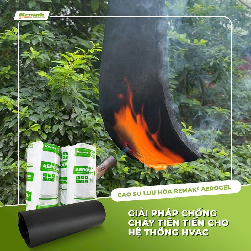 Xốp cao su lưu hoá bảo ôn Remak chịu được nhiệt độ từ 500–600°C, không bắt cháy, không sinh khói độc.